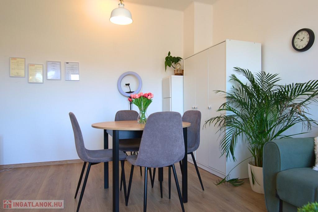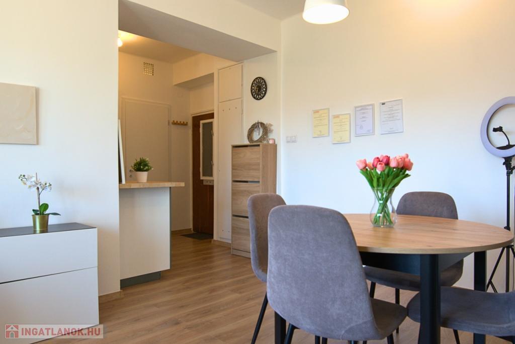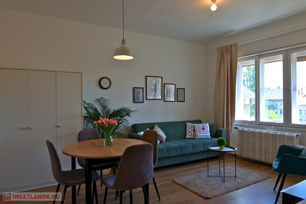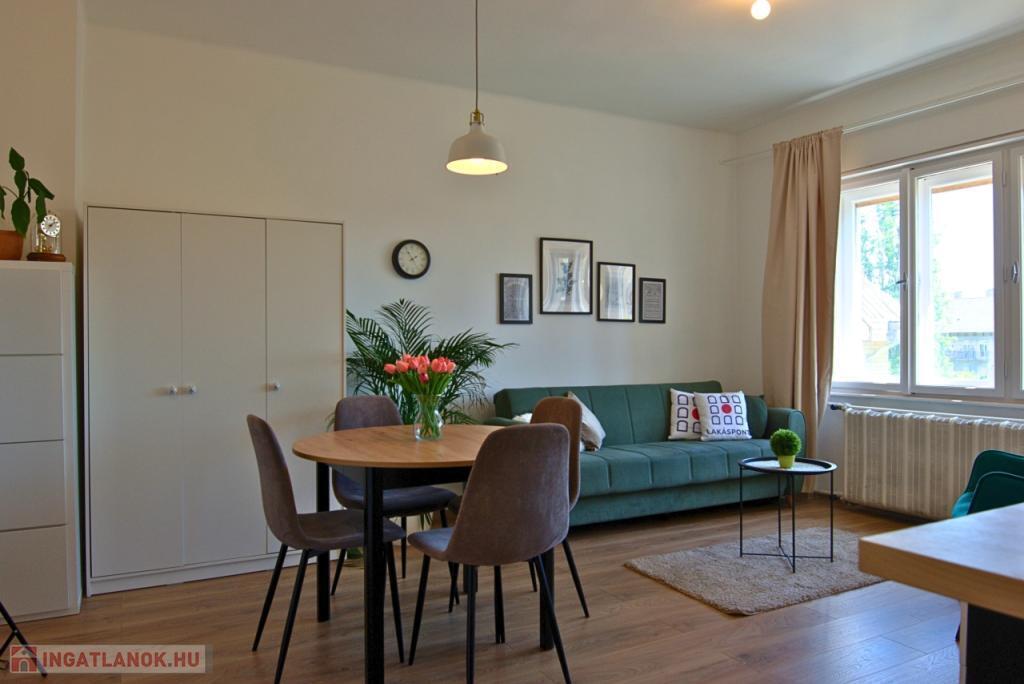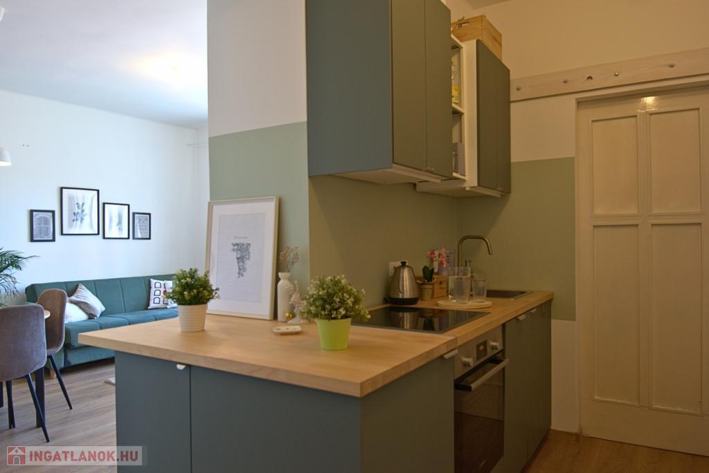 KIADÓ Budapest belvárosában az V. Kecskeméti utcánál, csendes mellékutcában, felújított liftes házban legfelső, 6. emeleti (felette padlás van) 35nm-es felújított, légkondicionált 1 nappali 1 hálós, bútorozatlan, IGÉNY ESETÉN BÚTOROZOTTAN -gépesített, franciaerkélyes lakás. Jelenleg bérlő lakik a lakásban, aki június 7-én költözik ki. A három évvel ezelőtti felújítás során minden vezeték cseréje megtörtént és új bútorok kerültek beépítésre. Konyhában villanytűzhely sütővel, elszívó és mosogatógép lett beszerelve, a hálóban beépített gardrób található, ezenkívül kb 4 nm-es tároló is tartozik a lakáshoz. Tökéletes a lokáció, az ingatlan a Károlyi utcában van, ablakai a Károlyi-kert felé és a Petőfi Irodalmi Múzeumra néznek. Nyugodt élettér, ugyanakkor az Egyetemek közelsége teszik vonzóvá, a Duna part, a híres Fővám téri vásárcsarnok, az Egyetem tér, a Váci utca nyüzsgő, élettel teli forgataga pár perc sétával elérhető. A környék infrastruktúrája kitűnő, mindenhol éttermek, kávézók , bevásárlási lehetőségek. A közlekedés Pest és Buda irányába is kiváló, a Kálvin téren a 3-as, 4-es Metró, a 47, 49-es villamos és számos buszjárat található. Alacsony rezsivel fenntartható, a házközponti fűtés díja, a vízdíj és a közös költség mindössze 21.000Ft./hó, ezen felül csak a villany fizetendő mérés és fogyasztás alapján. Megtekintés rugalmas.