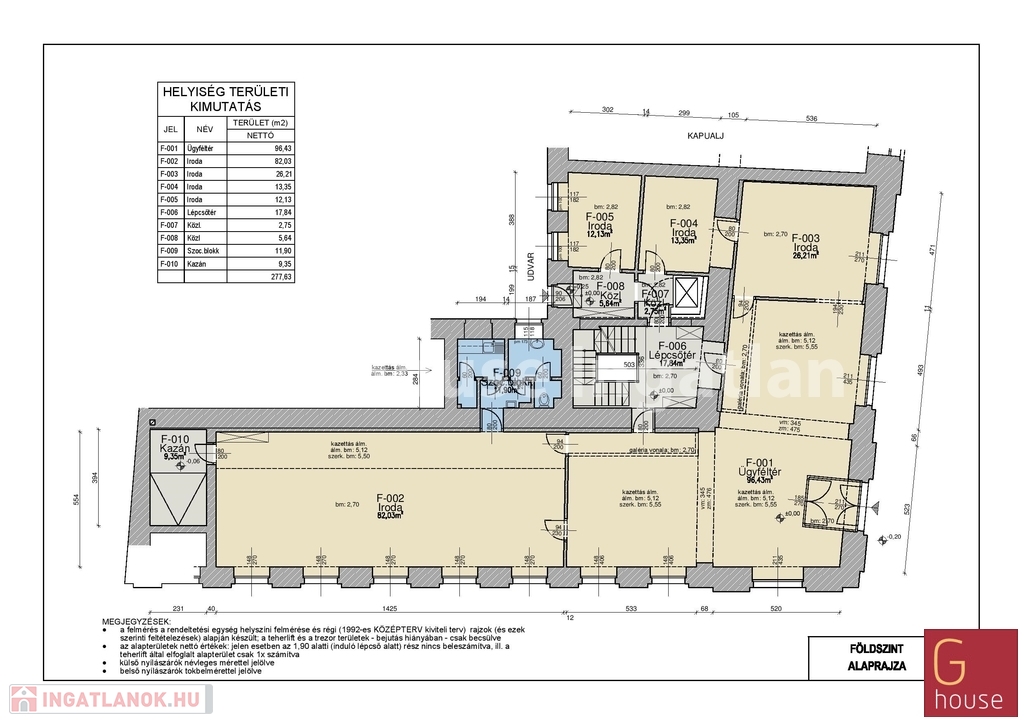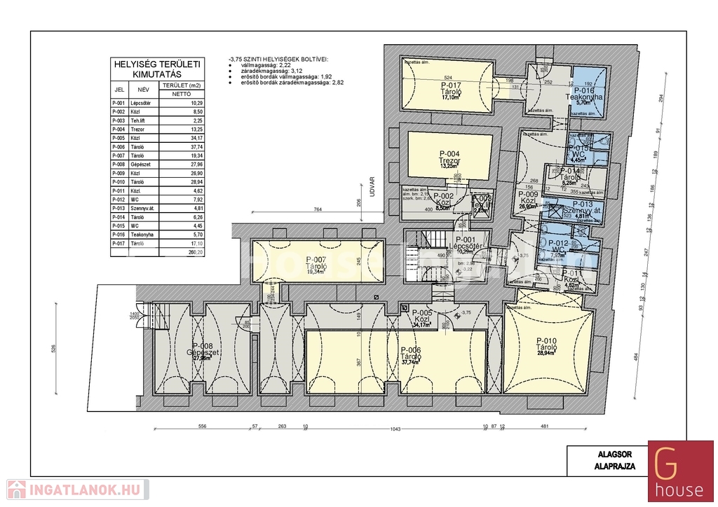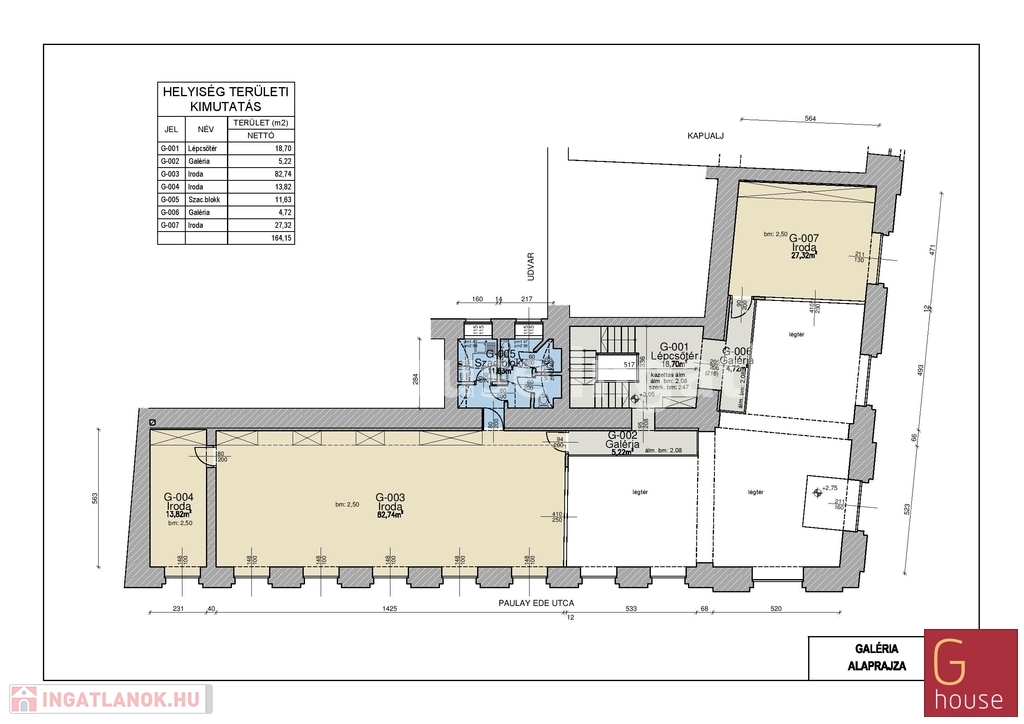 Elosztása: 278 nm földszint, 164 nm galéria és 260 nm pinceszinttel rendelkezik.
