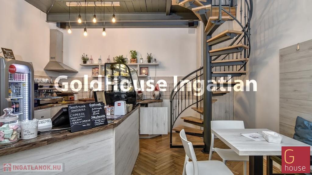 Jelenleg az egyik üzletben (24m²) egy kávézó-fagyizó-reggeliző üzemel, míg a másikban egy önkiszolgáló mosoda.
