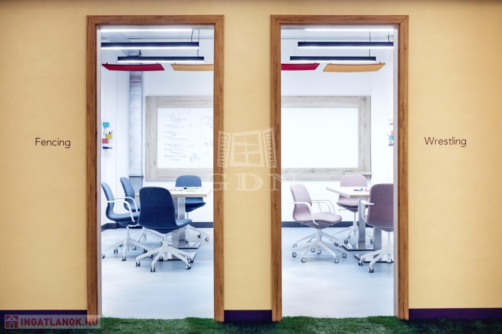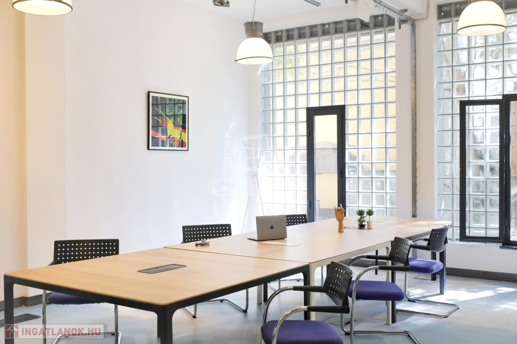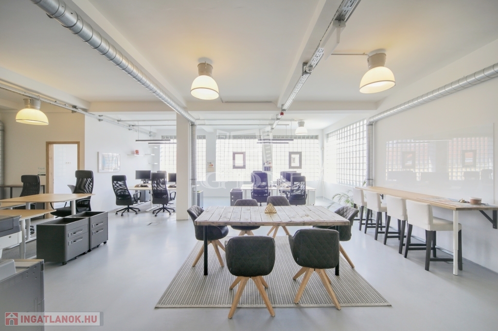 Ipari design, áradó fény jellemzi ezt a teret, hogy tetszés szerinti elrendezésben inspiráló és hatékony legyen a közös munka. Tárgyalók, teakonyha és saját mosdók is megtalálhatók ebben az indusztriális miliőben.