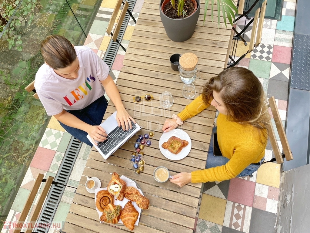 Ez a napfényes, tágas irodatér privát tárgyalójával és teakonyhájával az épület egyik fénypontja. A csoda mégis a Konzervatórium belső kertjére nyíló teraszon történik, így egész napos koncertélményben lehet részünk.
