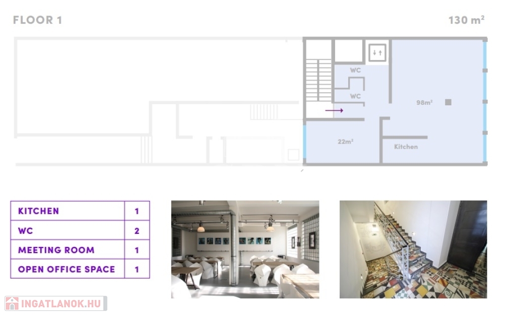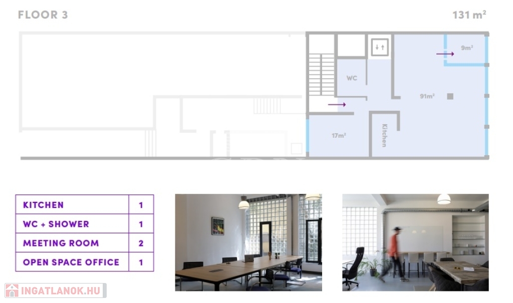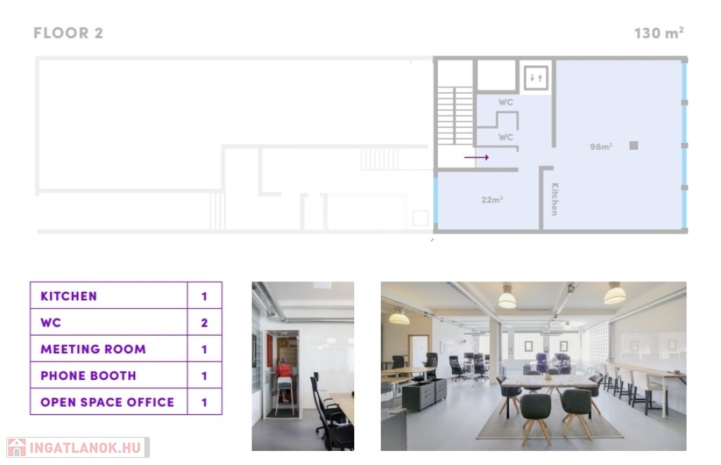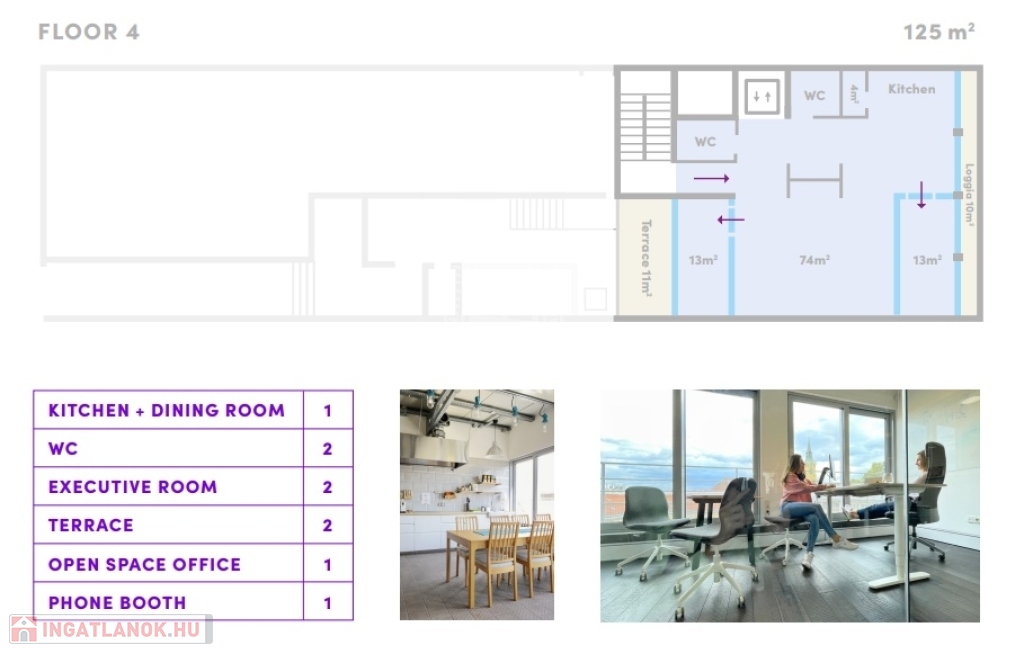 A new york-i loftok hangulatát idézi, hogy a lift egyből az irodatérbe nyílik. Kedvenc telefonfülkénk is itt kapott helyet, továbbá tárgyaló, teakonyha és mosdók gondoskodnak a kényelemről.