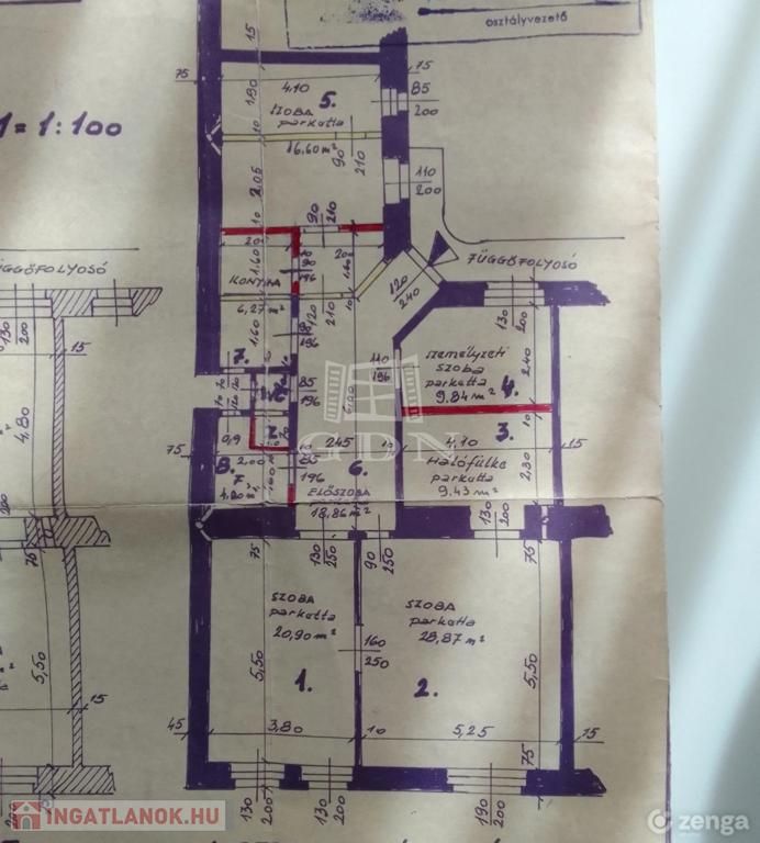 A jelenlegi kialakítás 4 különálló szobát + 1 hálószobát tartalmaz.