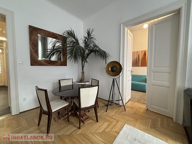 Eladó Budapest VI. kerületében, az Ó utcában egy 73 nm-es, 1. emeleti, felújított nagypolgári lakás.