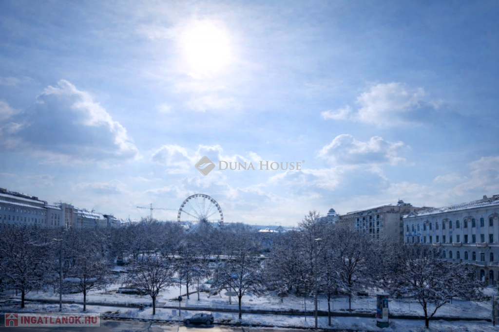 Deák téri óriáskerékre néző panoráma ebben a méretkategóriában rendkívül ritka adottság.