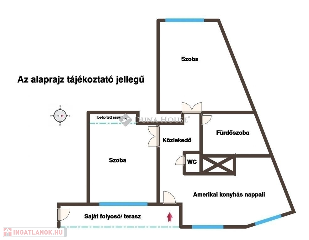 -Gang jellegű, de funkcionálisan kizárólag ehhez a lakáshoz tartozó, terasz