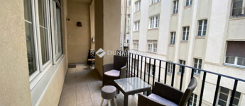 A quasi-private terrace: a private gangway facing a quiet inner courtyard, used exclusively by this apartment (no other units open onto it)