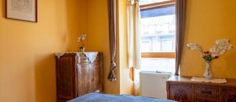 A lakás csendes, a ház parkosított, zöld udvarára néző.