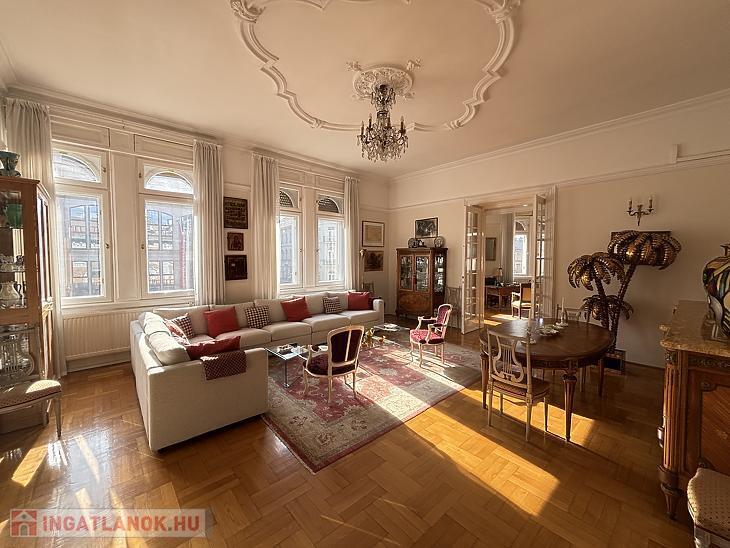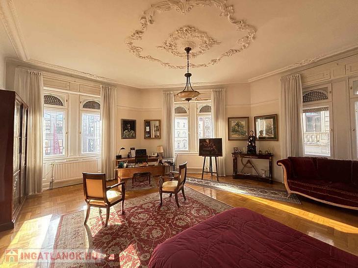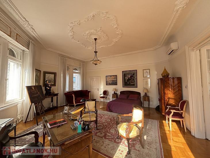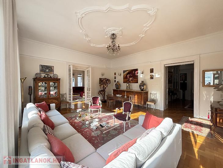 Budapest egyik legpatinásabb körútján, a Teréz körúton kínálunk megvételre egy 167 m²-es, kivételes hangulatú nagypolgári lakást egy liftes, rendezett társasház 3. emeletén.