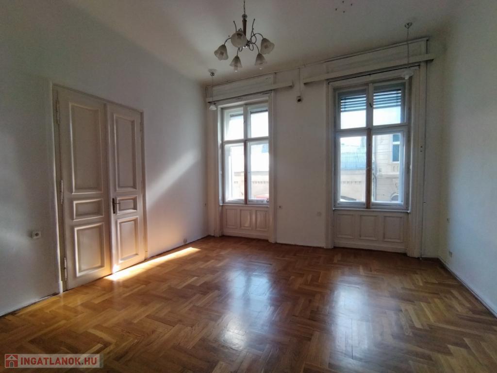 VI. Teréz körúton a Nyugati pályaudvarral szemben rendezett, lift nélküli ház I. emeletén kiadó 90 nm-es jó állapotú lakás.