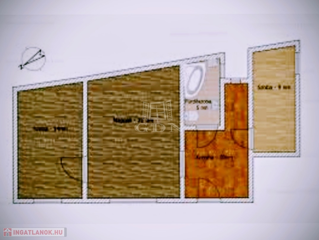 Két szoba plusz egy félszobával rendelkezik, amelyet bármilyen célra fel lehet használni.