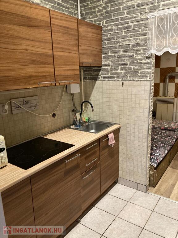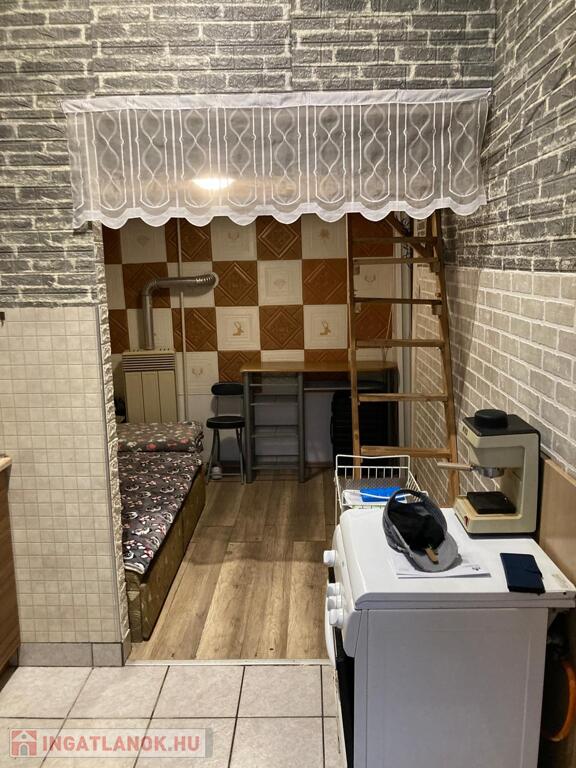A nappali három ablakos, nagy méretű, természetes központi térként működik. A hálószoba külön helyiség, önállóan szeparálható — ami ebben a méretkategóriában ritka előny. A konyha a bejáratnál található, természetes fényt kap a bejárati ajtón keresztül, így modernizálva praktikus előtér–konyha egységgé alakítható.