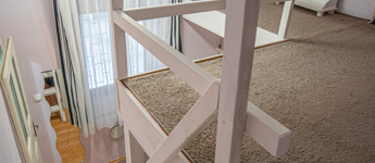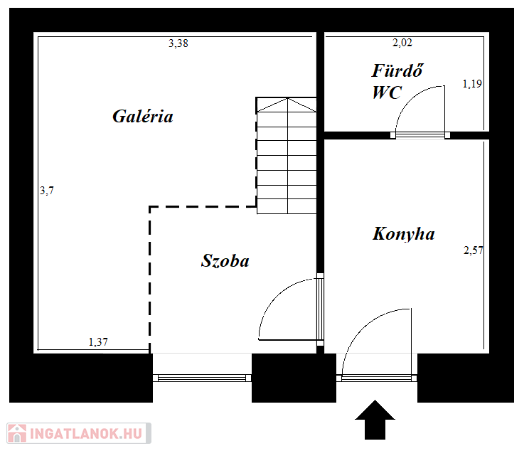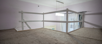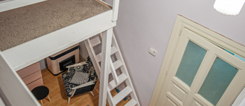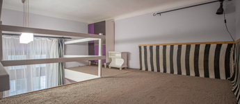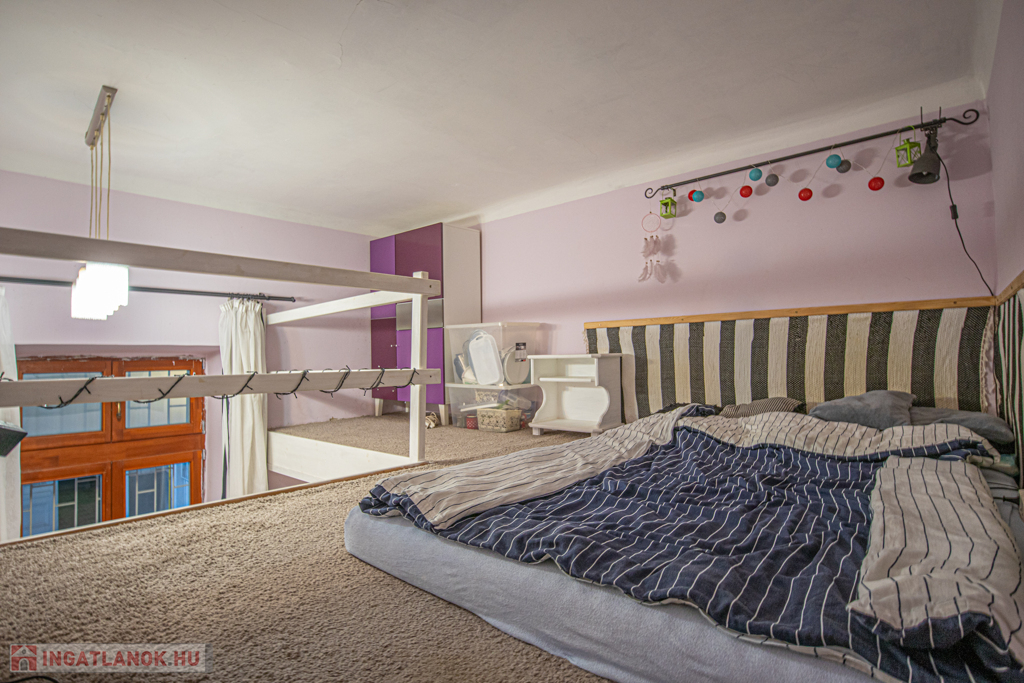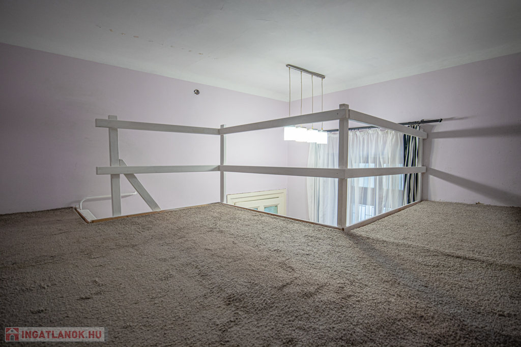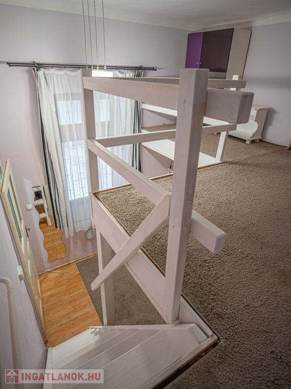 A nagy belmagasságnak köszönhetően egy kb 8nm-es, masszív galéria került kialakításra ami hálószobaként is funkcionál.