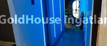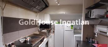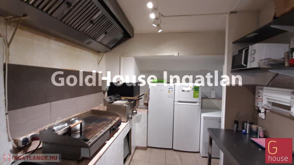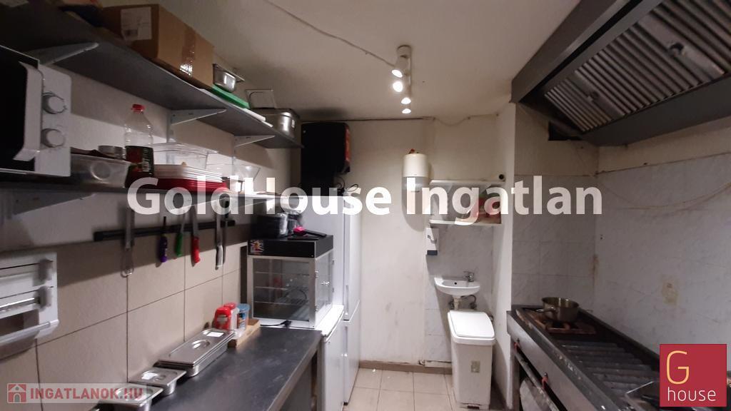 A földszinten jelenleg bár kialakítású, az emeleten mosdók, vendégtér és egy kisebb konyha található. Igény esetén a gipszkarton fal elbontásával nagyobb konyhaterület is kialakítható. A konyhai elszívó a tető fölé kivezetésre került. Fűtés: cirkó. Közös ktsg: 36 e Ft/hó.