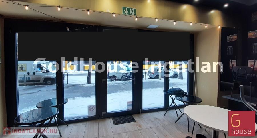Az üzlet szinte teljes szélességében nyitható portállal rendelkezik, 25 nm-es teraszra van most engedélye.