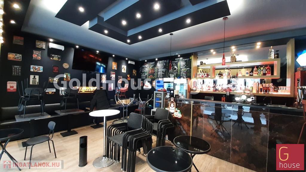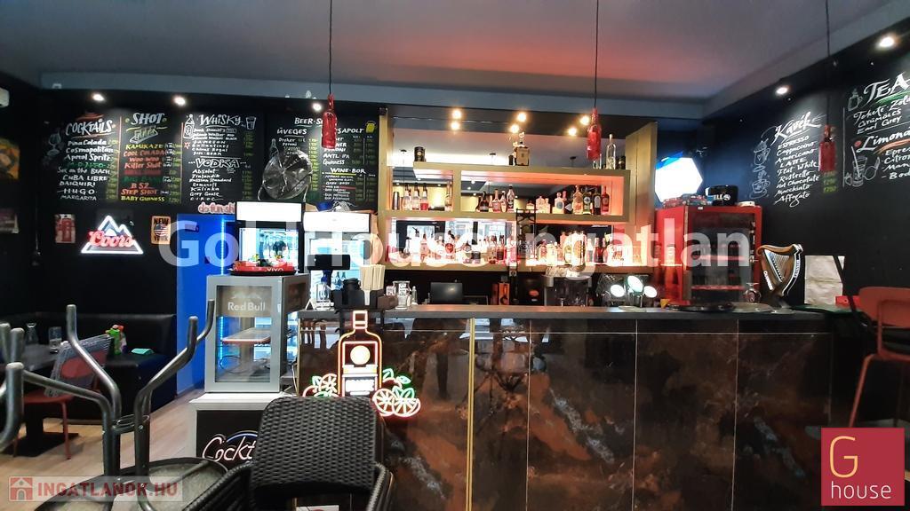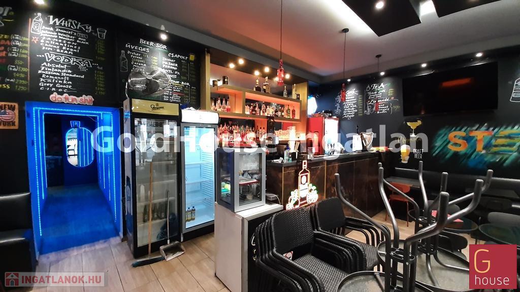 Hajnalig nyitva tartható, kétszintes, engedélyekkel rendelkező bár-pub-étterem teljes berendezéssel, felszereléssel.