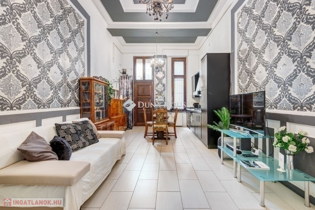 ELADÓ LUXUS NAGYPOLGÁRI LAKÁS A DOHÁNY UTCÁNÁL AIRBNB ENGEDÉLLYELBudapest VII. kerület 84 m² 2 szoba 120,49 M FtA belváros szívében, a Dohány utcai Zsinagóga szomszédságában kínáljuk eladásra ezt a neobarokk műemlék épületben található, 84 m²-es, teljeskörűen felújított nagypolgári lakást.Főbb jellemzők:Tágas, világos szobák míves stukkókkal, olasz design tapétávalLuxus fürdő: sarokkád + nagyméretű zuhanyfülkeVilágos, elegáns terek, egyedi bútorozássalImpozáns, felújított lépcsőház és homlokzatBefektetésként is kiváló:Engedélyezett rövid távú kiadás (Airbnb)~80% kihasználtsági ráta tapasztalatok szerintTuristák által preferált lokáció folyamatos keresletLokáció:Pár perc sétára a Deák tér, az Andrássy út, valamint Budapest kulturális és gasztronómiai központjai.Tökéletes választás igényes otthont keresőknek és befektetőknek egyaránt!Érdeklődj még ma, mielőtt más lecsap rá!
