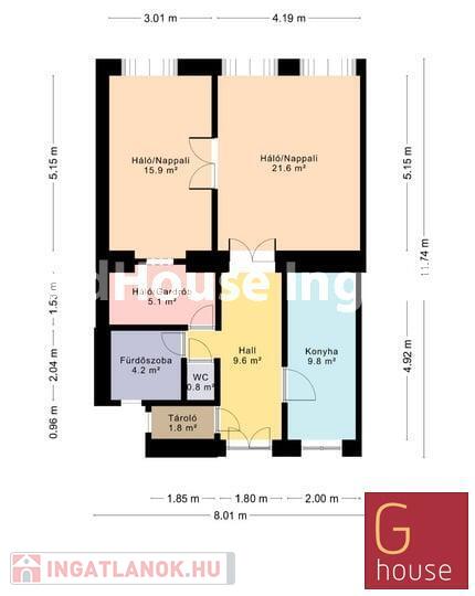 Esztétika: A helyiségek friss festést kaptak, az eredeti fa parketta pedig jó állapotban megőrzésre került.