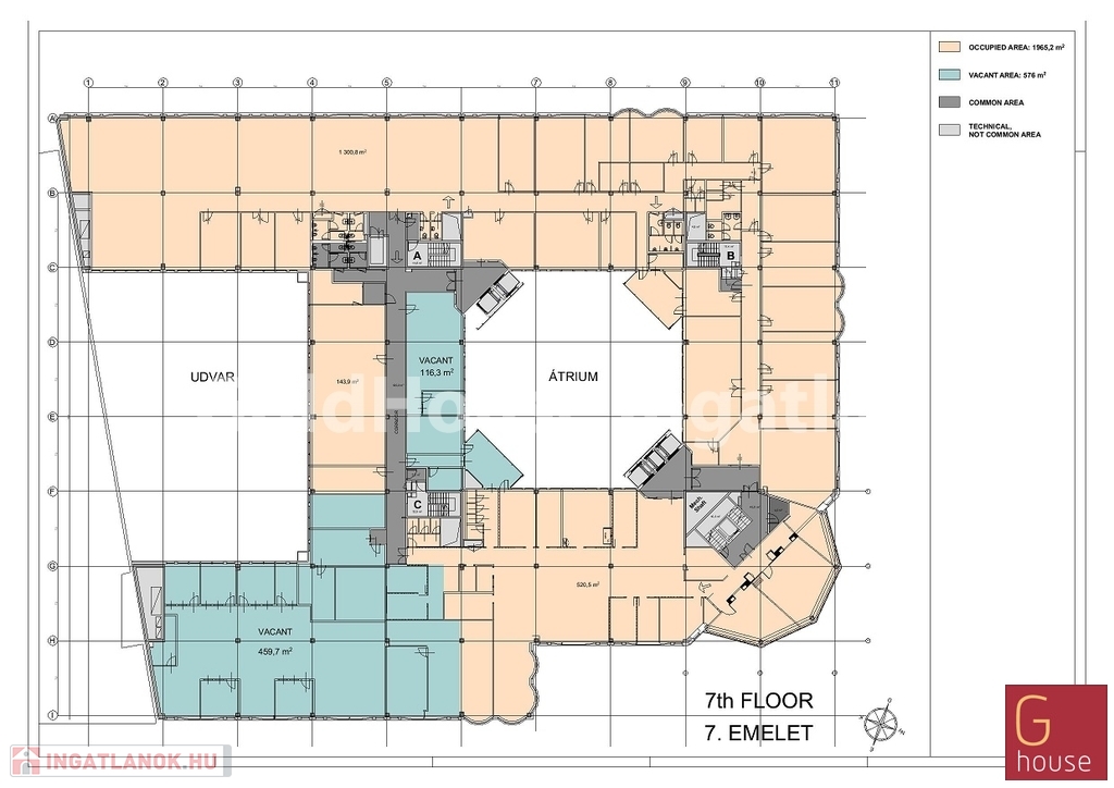 II. emeleten 1550m² irodaterület