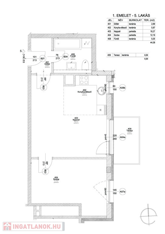 A lakóegységben 40-44 lakás helyezkedik el 2077 nm-en változatos méretekben a 31 nm-től 123 nm-ig az 1 szobástól az 4 szobásig. A kertkapcsolatostól az erkélyesen át a hatalmas tetőteraszosig.