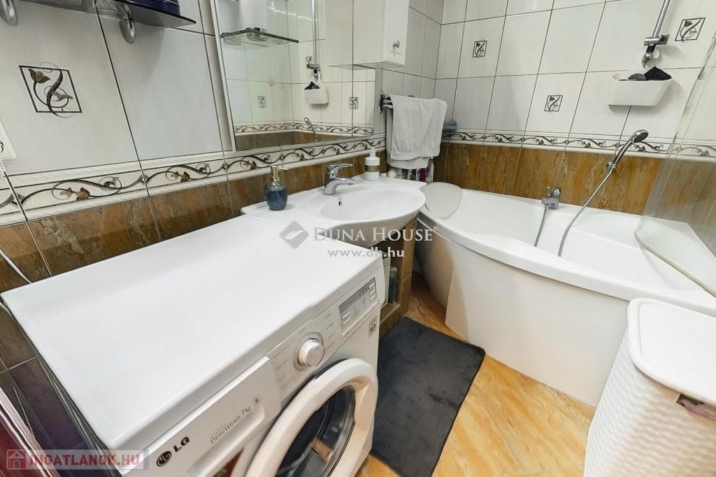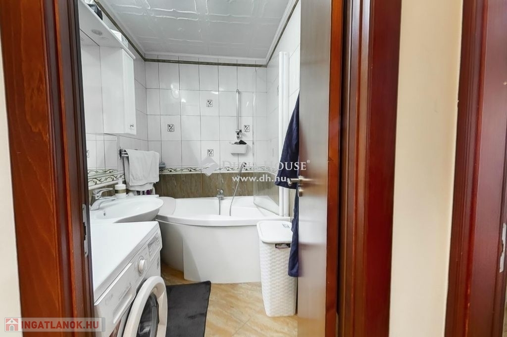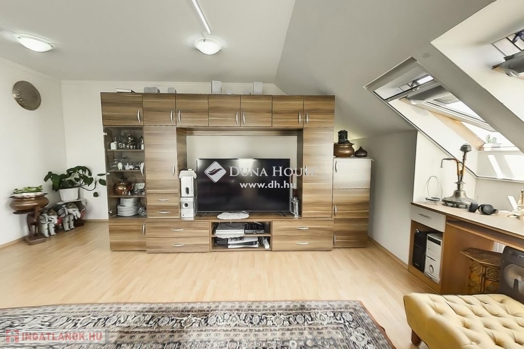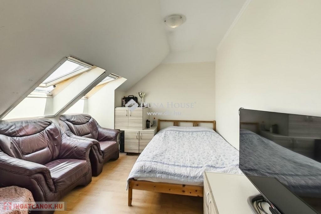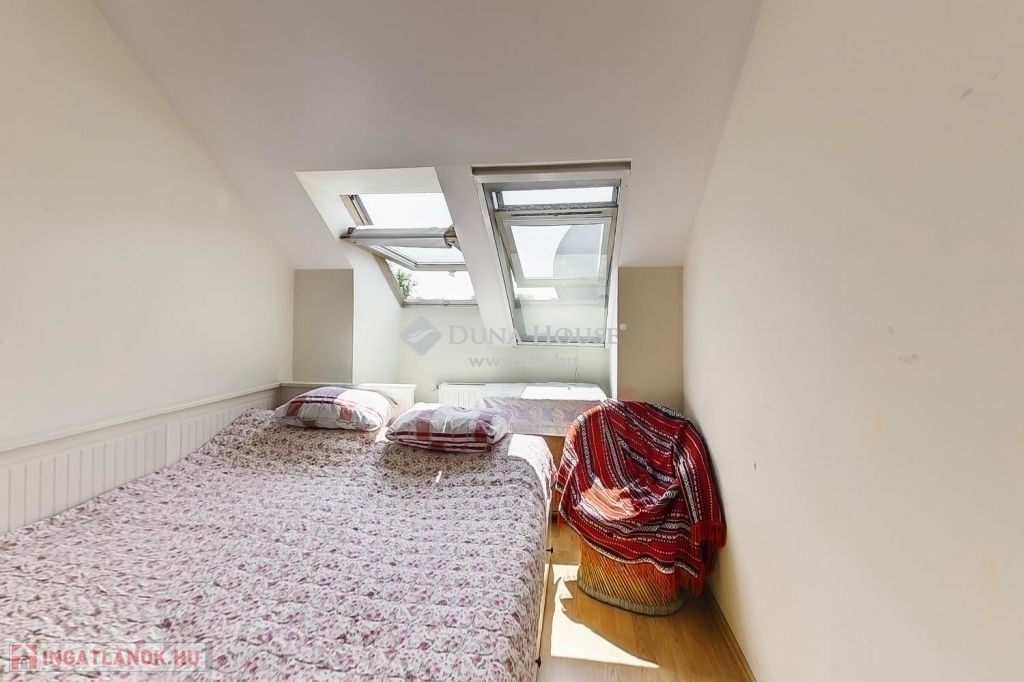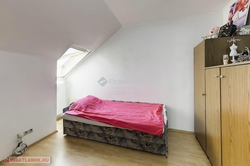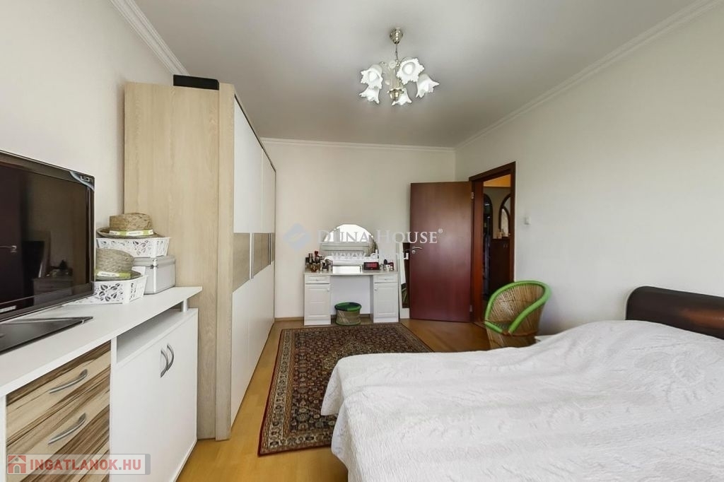 A felső szintén egy nagy világos nappali szobába érkezünk ahonnan egy folyosón keresztül jutunk el a 3 halószobába és itt van a fürdő és a wc is.A fűtés és meleg víz házközponti egyedi mérőkkel. A felső szinten klíma biztosítja nyáron is a kellemes klímát. A lakáshoz tartozik 2 autóbeálló is.