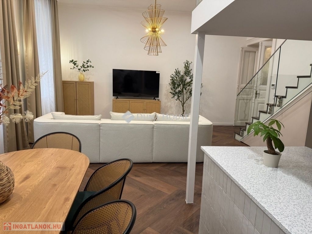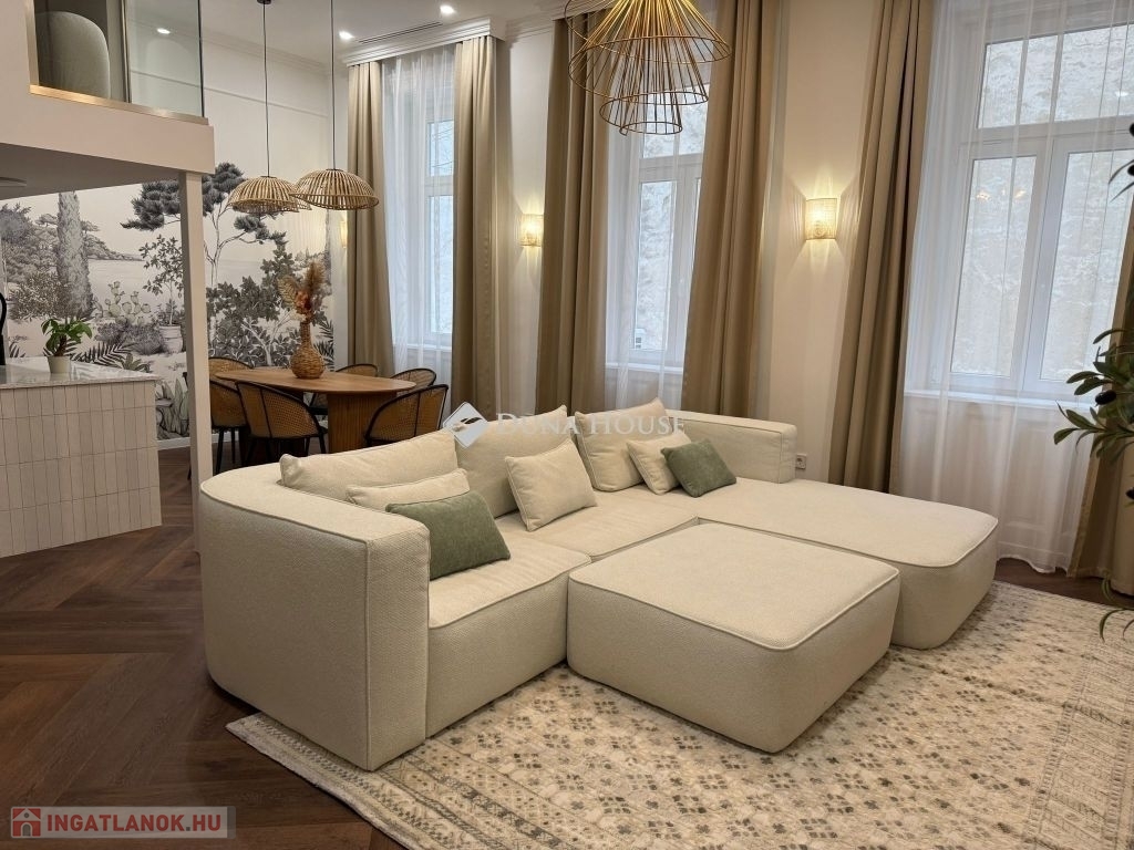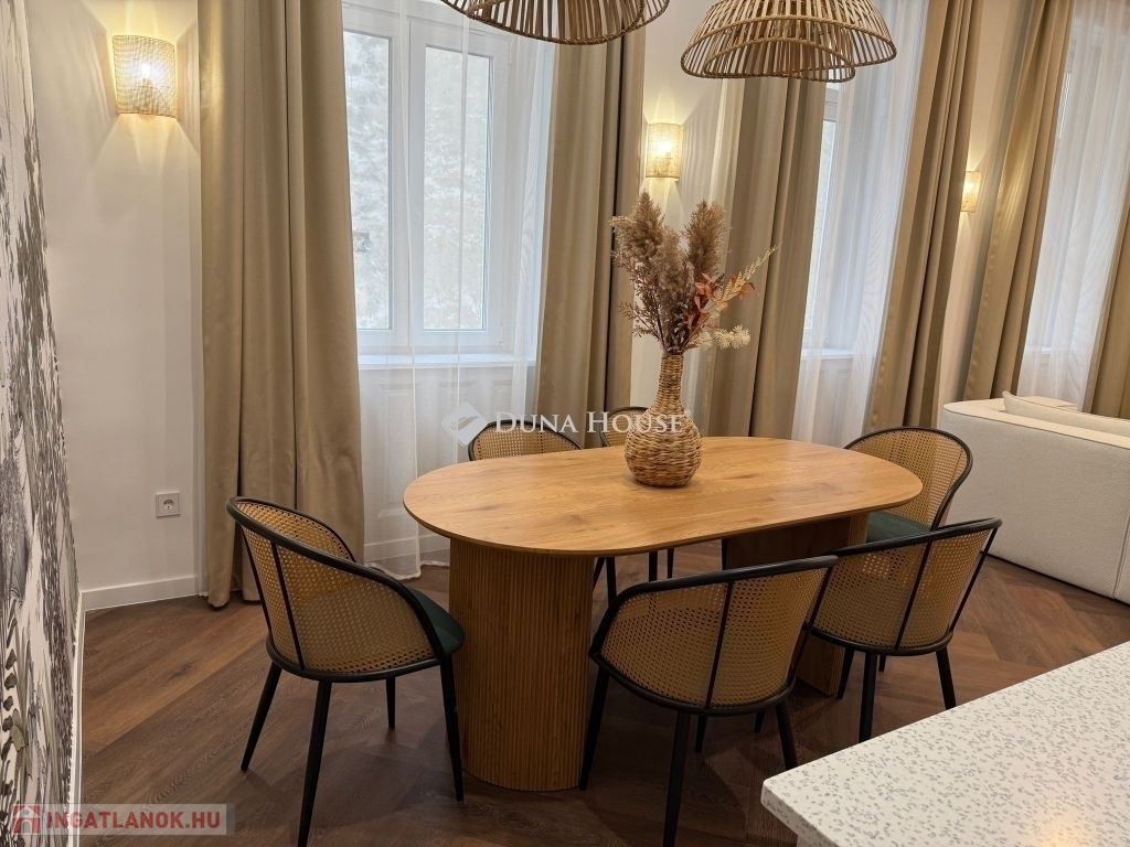 a Bródy Sándor utcában kínálunk eladásra egy 70 m²-es + 9 m² galériás, teljesen újragondolt, prémium műszaki tartalommal rendelkező belvárosi lakást, 6 m² saját pincével.Ez nem egy felújított ingatlan ez egy mérnökileg és esztétikailag végigtervezett otthon.Az ingatlan teljes körűen, alapig visszabontva újult meg:új réz elektromos hálózat, új gépészet, minőségi burkolatok, egyedi asztalosmunkák. Az eredeti, több mint 100 éves beltéri ajtók felújítva megmaradtak karaktert adva a modern térnek.A fűtéshűtés egy 7,5 kW-os, légcsatornázható LG rendszerrel megoldott, frisslevegős kivitelben, mennyezeti befúvókkal így az ingatlan egész évben komfortos, ablaknyitás nélkül is.A fürdőszobában elektromos padlófűtés és 120 literes, wifis Ariston bojler biztosítja a kényelmet.A nappalihoz kapcsolódó, teljesen zárt, üvegfallal leválasztott 9 m²-es galéria valódi hálószobaként funkcionál.A konyha egyedileg gyártott, BOSCH gépekkel, hőálló Staron munkapulttal és konyhaszigettel felszerelt.Az épület kívül-belül rendezett, felújított homlokzattal, 2 lifttel, kamerarendszerrel és jó lakóközösséggel.Ez az ingatlan nem tömegigényre készült.Azoknak szól, akik értik a minőséget, a technikát és az egyediséget és nem a kompromisszumot keresik.Az ingatlan vételára tartalmazza teljes butorzatot és a gépeket is. Hívjon akár hétvégén is!