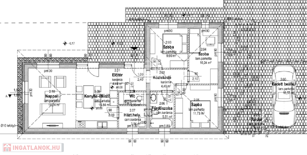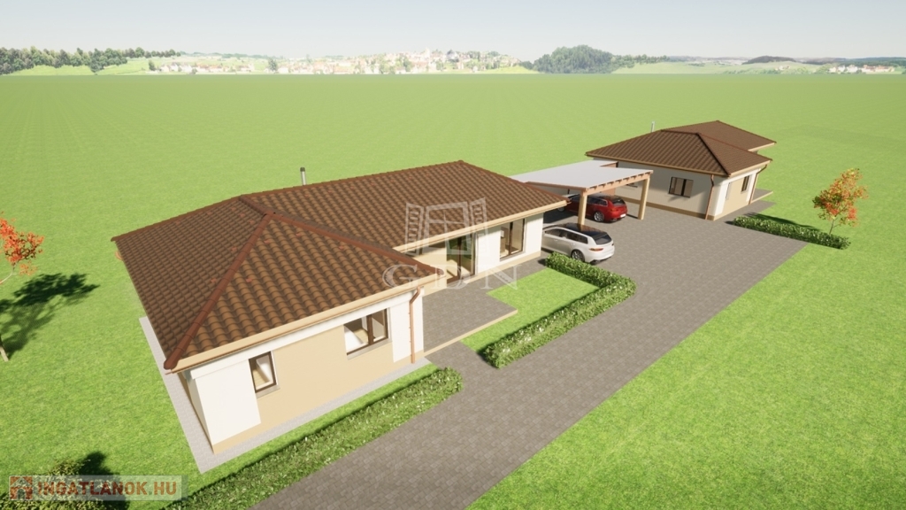 Dinamikusan fejlődő településen Vasszécsenyben, nyugodt környéken osztott telken családiházak eladók. A jól átgondolt tervezésnek köszönhetően a házak fedett gépkocsibeállókkal érintkeznek. Az ingatlanok magas műszaki tartalommal épülnek. A sávalapra épülő lakóegységek Porotherm téglából készülnek, vakolt felületekkel. A tető héjazata Bramac Római Novo cseréppel történik. Három rétegű nyílászárói fokozottan hang-és hőszigetreltek, motoros aluredőnyökkel felszereltek. Homlokzatára Austrotherm EPS hőszigetelő rendszer kerül, 15 cm vastagsággal. Födémere 30 cm szigetelést terveztek. Fűtéséről, meleg vízellátásáról kondenzációs gázkazán gondoskodik, padlófűtéses hőleadással. Az ingatlan nappaliában hűtő-fűtő klíma gondoskodik a kellemes hőmérsékletről. Elektromos ellátottsága 3x25 Amperrel történik. Az ingatlanokat vízlágyítókkal is felszerelik. A házak 86 m2 nagyságúak, 15 m2 terasszal. Három hálószoba + nappali kialakításúak. Az utcafronti házhoz 330 m2 saját kert tartozik. A hátsó ingatlan 755 m2-es telekkel rendelkezik. Térkövezés bizonyos hányada, tereprendezés a vételár részét képezi. A Beruházó rugalmasságának köszönhetően belső módosításokra van lehetőség.