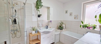A két lakrész között egy 17 m²-es, saját fürdővel ellátott helyiség található (jelenleg mosókonyha / fitnesz), amely akár külön dolgozószobaként vagy vendégrészként is használható.