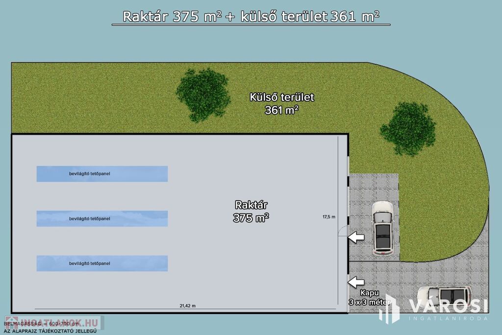 A raktárhoz tartozik az épületet körbevevő 361 m2 terület kizárólagos használati joga.