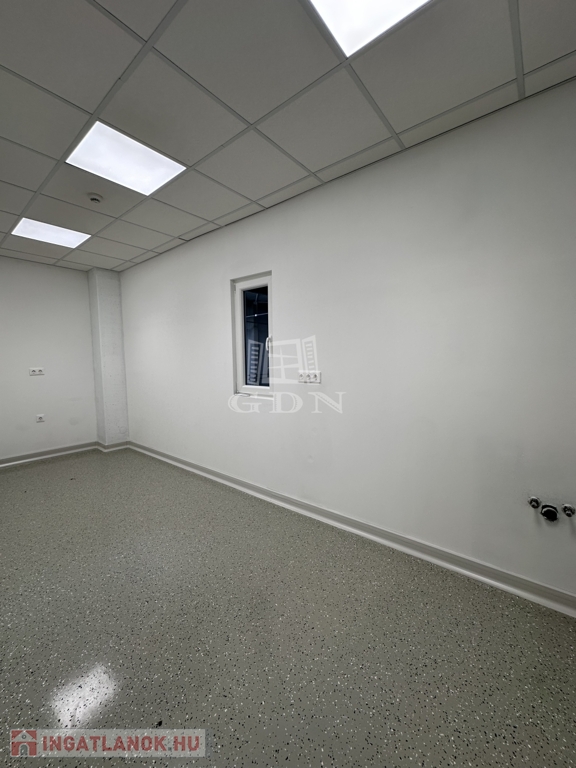 Az emeleten 105 m²-es, modern iroda található, amely egy konyhából, egy nagyobb irodahelyiségből, tárgyalóból és mosdóblokkból áll – ideális adminisztratív háttér biztosítására.