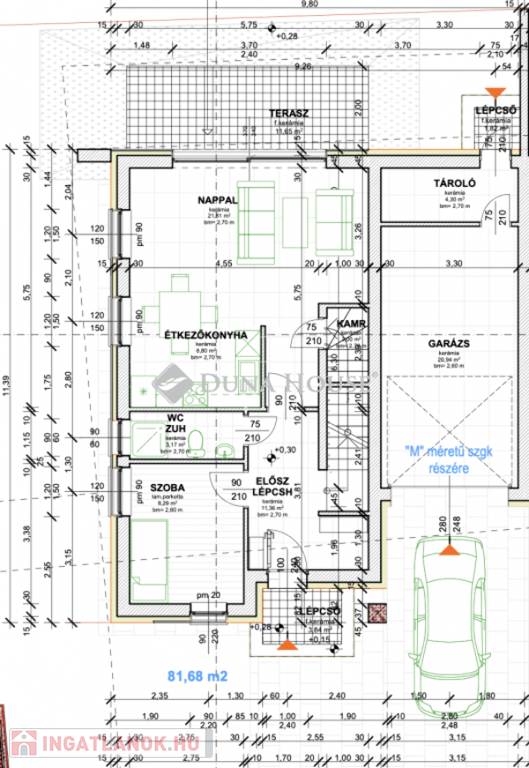 * Gépkocsibeállás: garázs + külső parkolóhely (10-20 m-re az ingatlantól)