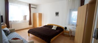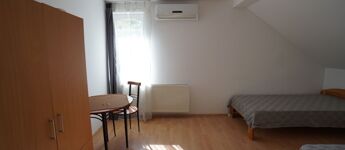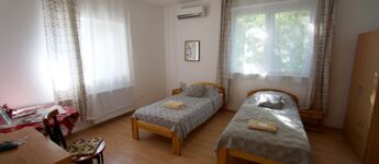 Az épület három szintje – félszuterén, magasföldszint és emelet – jól átgondolt elrendezésű. A magasföldszinten és az emeleten összesen nyolc klimatizált szoba található, mindegyik saját fürdőszobával és egyedi fogyasztásmérővel, ami különösen előnyös több lakrész vagy szálláshely üzemeltetése esetén. A földszinten négy szoba, négy fürdő és egy konyha, míg az emeleten további négy szoba és négy fürdő kapott helyet. Az ingatlan korábban szálláshelyként működött, és akár 24–30 fő befogadására is alkalmas.