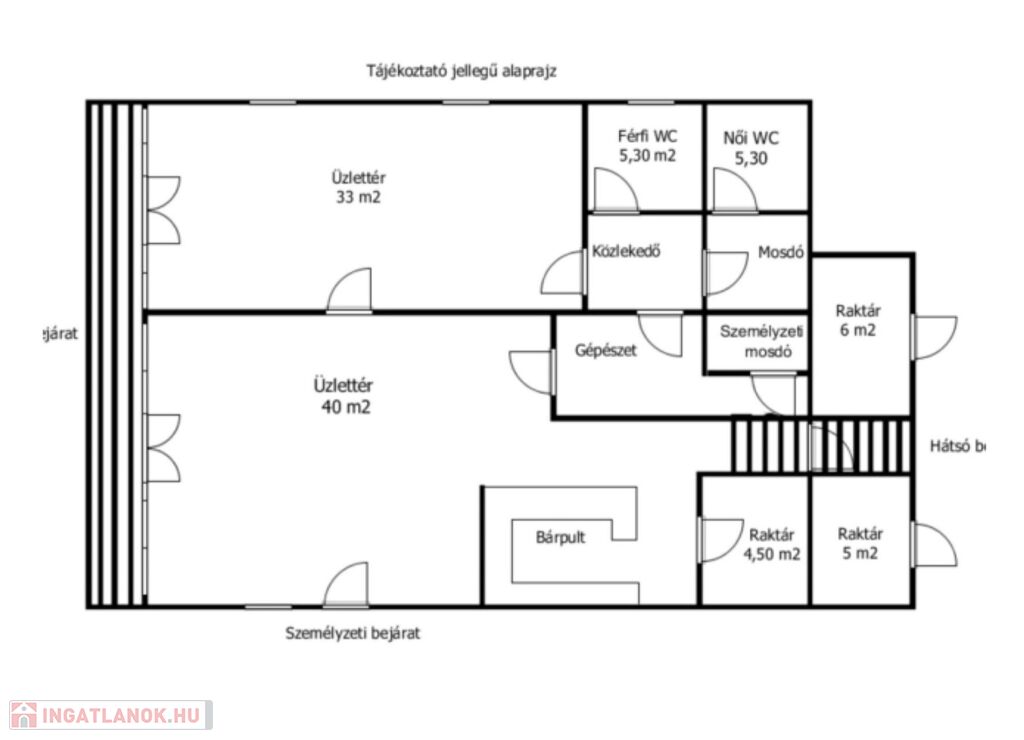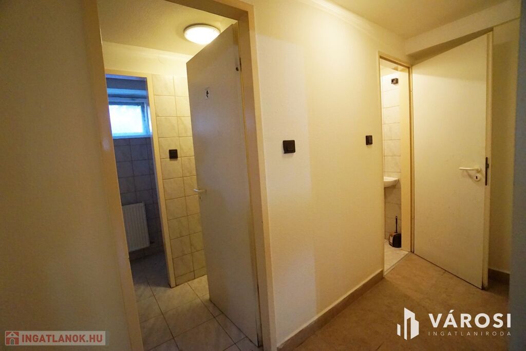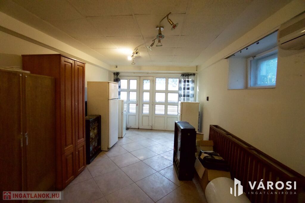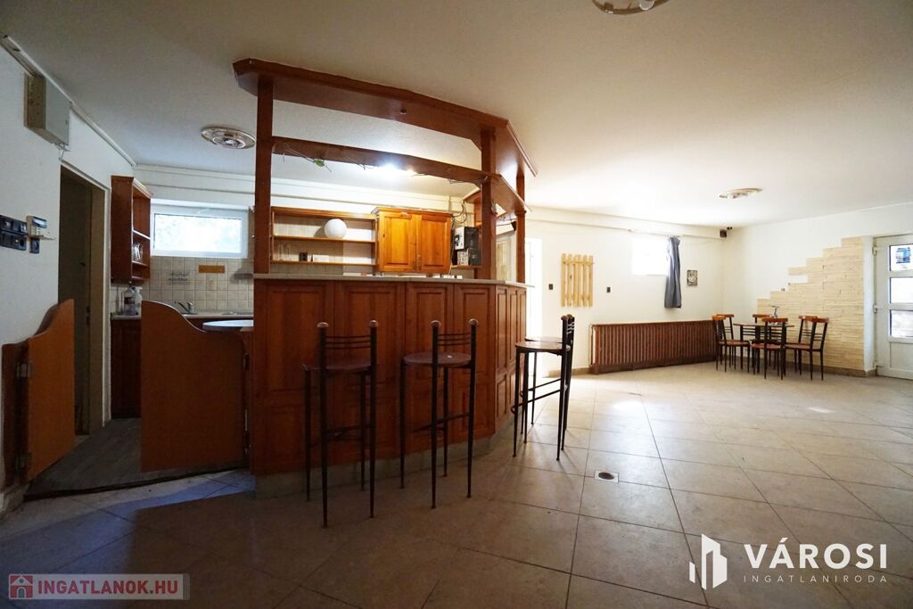 A félszuterén szinten, közvetlen utcafronti bejárattal két üzlethelyiség került kialakításra, amelyek korábban vendéglátóegységként működtek. A kiszolgálópulttal, eladótérrel, raktárakkal és mellékhelyiségekkel rendelkező helyiségek kiváló lehetőséget biztosítanak vállalkozás működtetésére, irodának, szolgáltatásnak vagy akár újabb külön bejáratú lakrész kialakítására. A tágas, világos terek és a jó beosztás mellett a 2018-ban elvégzett műszaki korszerűsítések tovább növelik az ingatlan értékét és kényelmét.