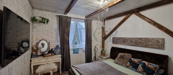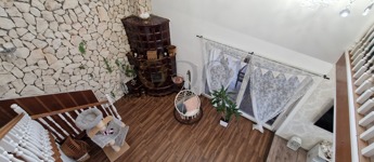 • Vintage stílus, modern megoldások: A konyha és a fürdőszobák stílusos felújításon estek át, minőségi burkolatokkal és egyedi konyhabútorral. A nappaliban egy minőségi és egyedi cserépkályha teszi még különlegesebbé a teret.