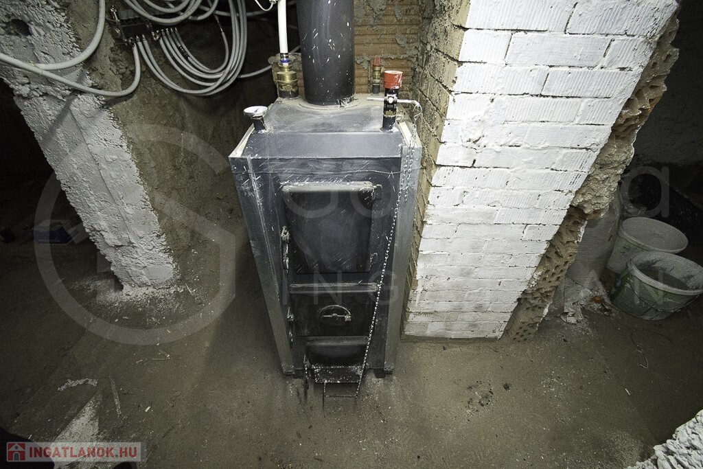 Fűtése vegyes tüzelésű néhány hónapos kazán, emellett gázkazánhoz ki van építve a rendszer, hőleadók radiátorok. Meleg vizet villanybojler állítja elő.