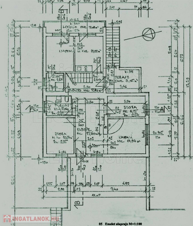 5. Tetőtér, kelet – 1 szoba, fürdő WC-vel, kb. 24 m2, teljes alapterület 37 m2, loggia 6 (9) m2