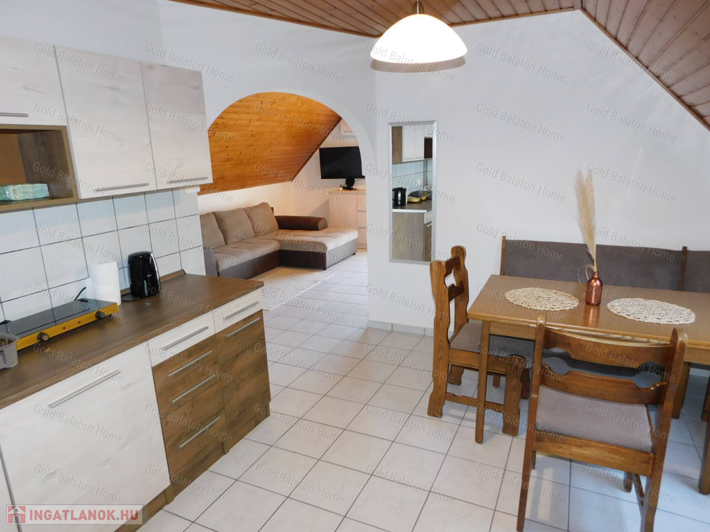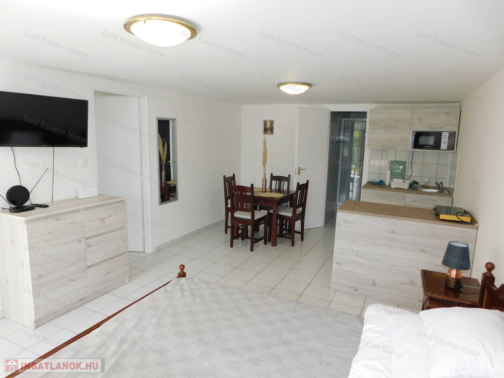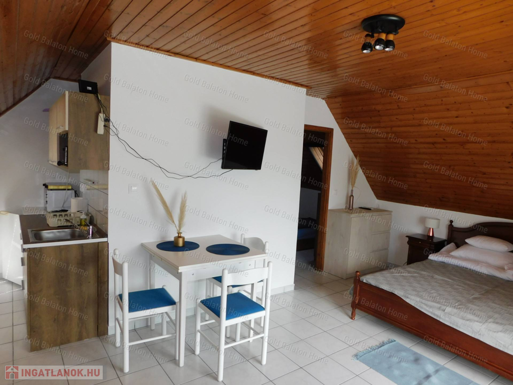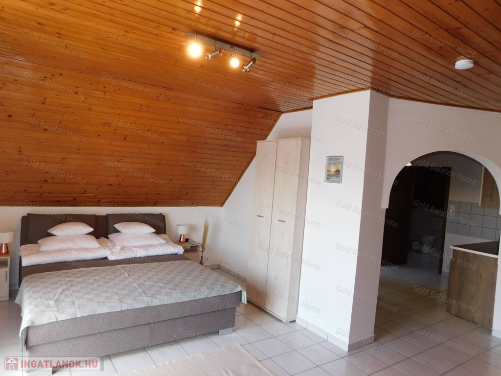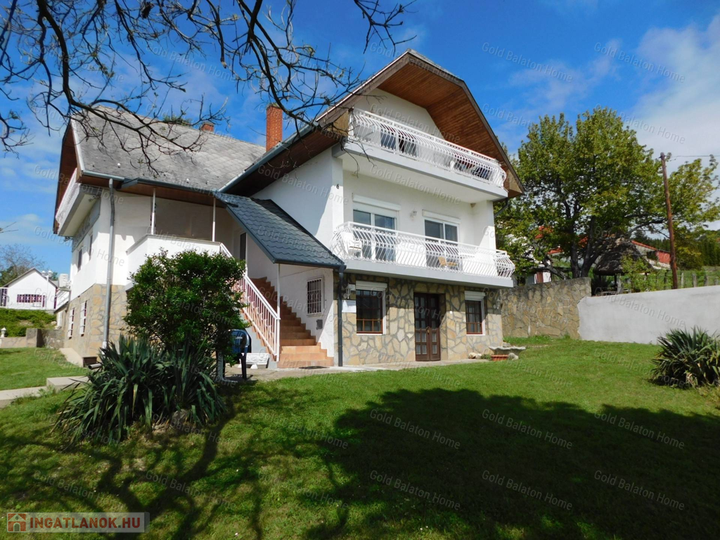 A Gold Balaton Home Ingatlaniroda kínálatában eladó egy külön helyrajzi számon lévő családi ház és a szomszéd telken található, úszómedencés üdülőkomplexum (apartmanház + három apartmanlakásos bungaló).