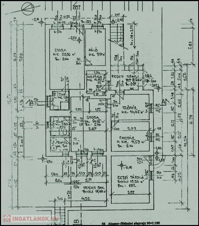 kerti raktár, kb. 74 m2