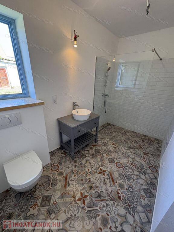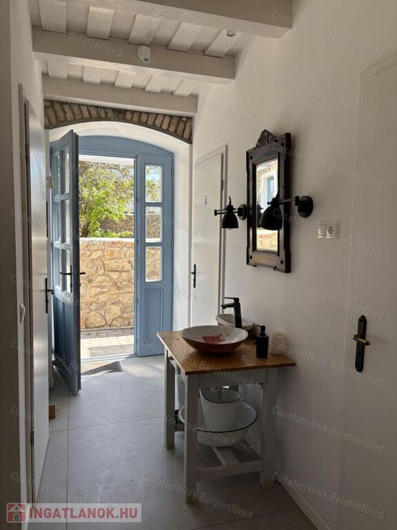 45 m²-es vendégház: A szintén frissen felújított, kétszintes vendégház ideális bisztró vagy más vállalkozás üzemeltetésére. Az elmúlt két évben sikeresen működött bisztróként, falusi pub-ként.