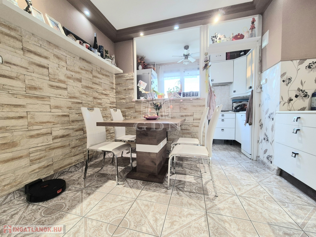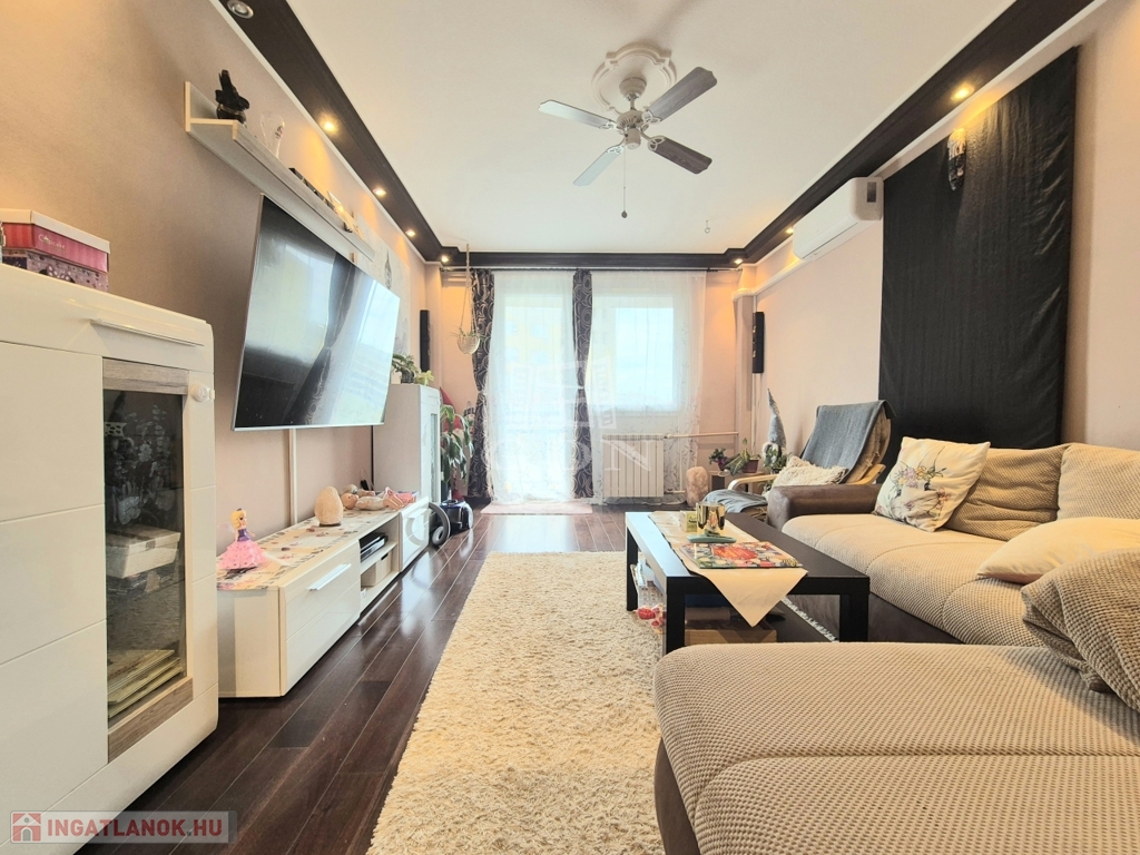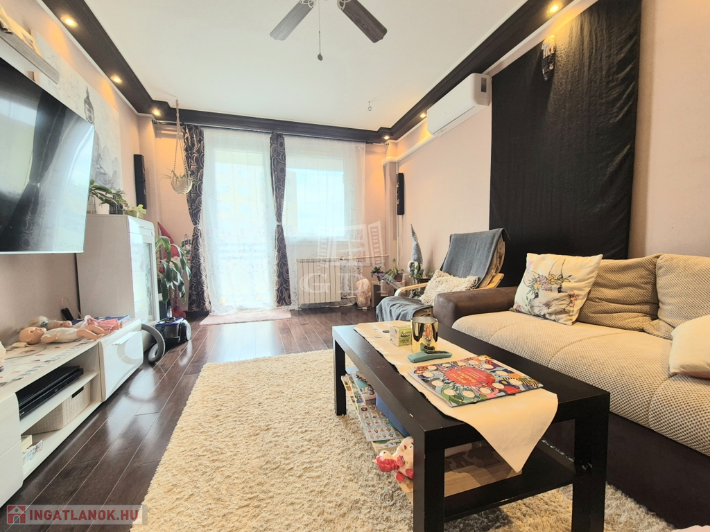 X. kerület metróhoz közeli részén, parkos környezetben, kifizetett panelprogramos társasházban kínálok eladásra, egy 6. emeleti, 74 m2-es, körbenapozott, erkélyes, ablakos konyhás, 2+2 fél különnyíló szobás, teljeskörűen felújított ( műanyag nyílászárókkal, egyedi hőmennyiségmérős radiátorokkal, korszerű villany, vízhálózattal, tetszetős beltéri ajtókkal szerelt, hideg- meleg burkolat cserén átesett) klimatizált