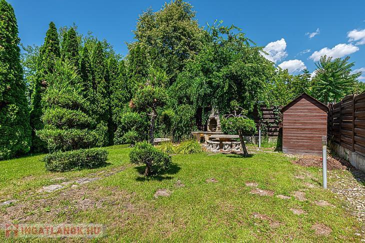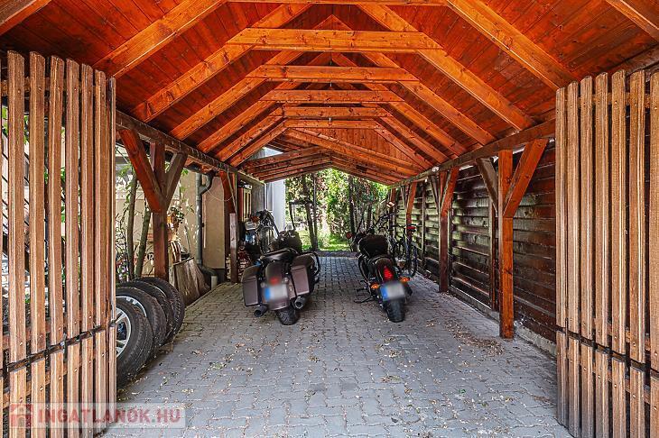 Az udvaron tágas, fedett kocsibeálló lehetőség biztosított.