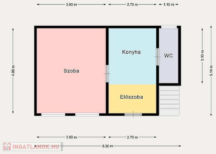 a felső, tetőtéri szinten pedig 3 félszoba került kialakításra.
