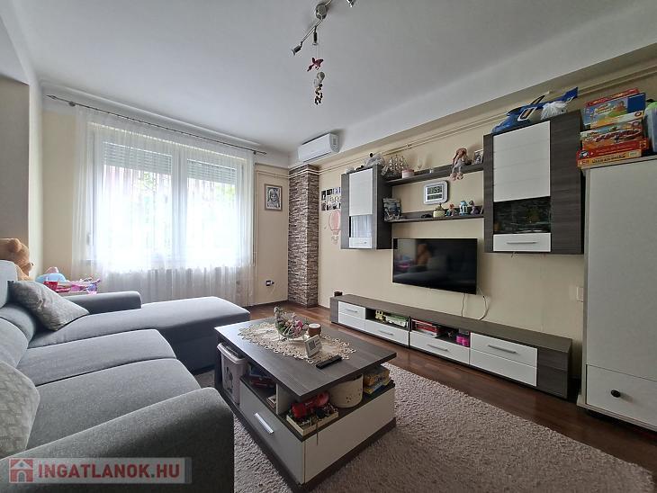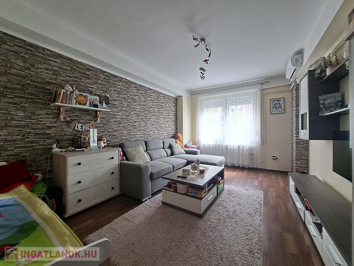 A lakás felújított állapotú, így új tulajdonosa számára azonnal költözhető. A korszerű műanyag nyílászárók hozzájárulnak az energiahatékonysághoz, míg a két darab klíma egész évben kellemes hőmérsékletet biztosít. Az átgondolt elosztásnak köszönhetően a 2+1 félszoba kényelmes életteret nyújt akár családok számára is.