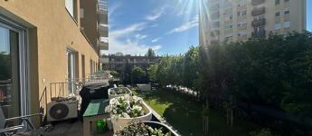 A nappaliból és a hálószobából is elérhető, közel 10 m²-es terasz egy parkos, csendes sétányra néz — ideális a nyugodt kikapcsolódáshoz.