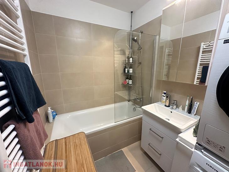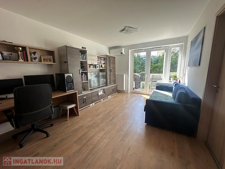 A Balance Garden Lakópark 2023-ban átadott, modern épületének második emeletén található ez a letisztult, újszerű lakás.