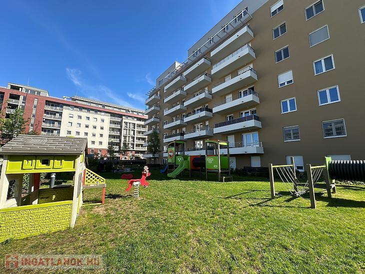 A társasház gondosan kialakított, parkosított belső udvara külön értéket képvisel: játszótér, valamint kerékpár- és babakocsi-tároló is rendelkezésre áll.