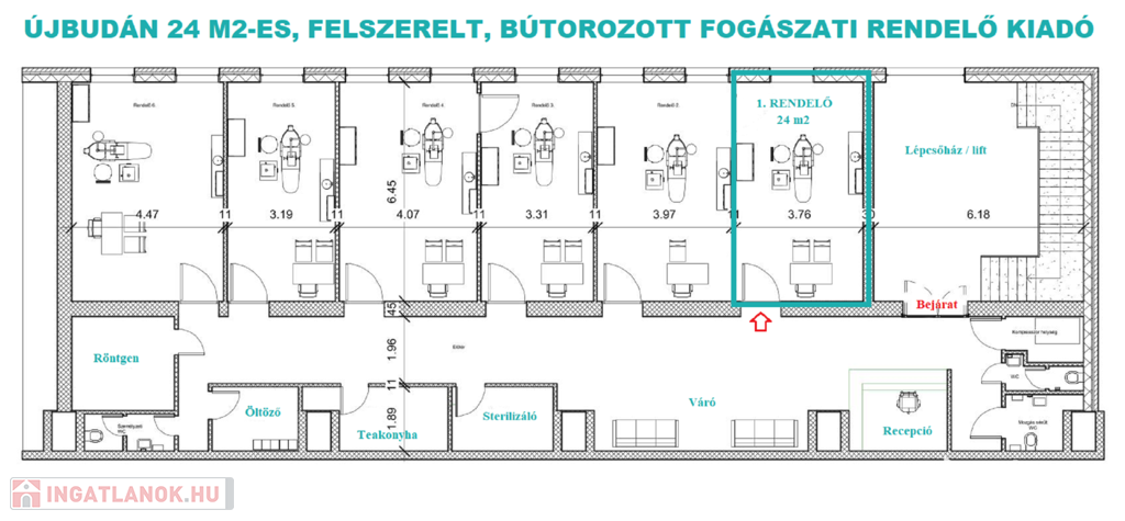 ÚJBUDÁN 24 M2-ES, FELSZERELT, BÚTOROZOTT FOGÁSZATI RENDELŐ KIADÓ