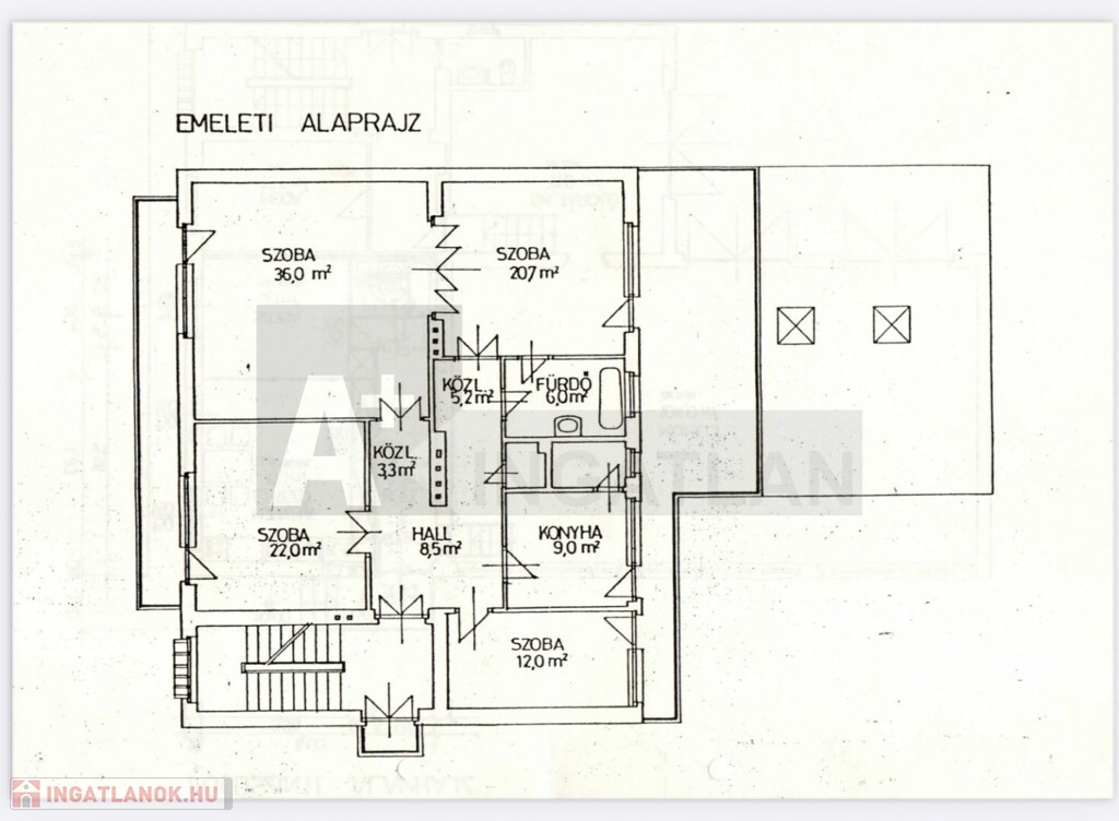 -emelet. 139,8 m2-es lakás , jelenlegi elosztása : 3 szoba/ 36m2, 20,7m2, 22m2/ hall , étkező+konyha , fürdő, wc, gardrób, lépcsőház , pihenő , 2 szoba erkély kapcsolatos ,a konyha és a 3. szoba pedig , a műhely felett kialakított, 80 m2-es teraszhoz kapcsolódik .A lakás jelenleg kiűrítés alatt áll.
