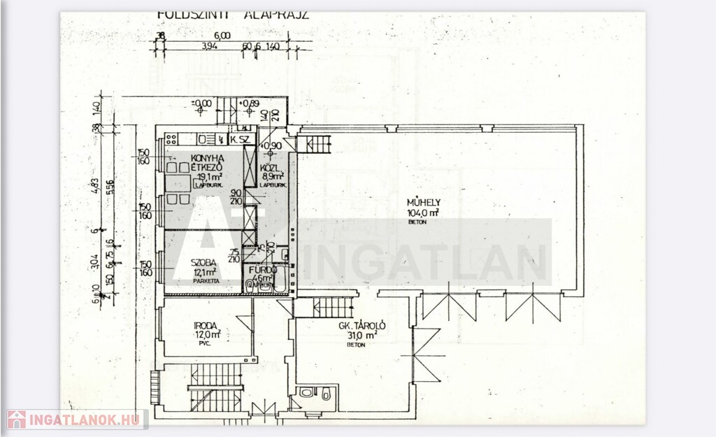 -földszint / emelt szint : összesen 134,20m2 irodák , ügyféltér/ üzlet , lépcsőház , közlekedők mosdó , wc , műhelyek..