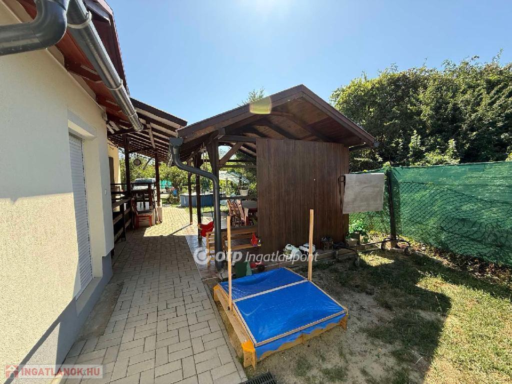 A telek szépen karbantartott, helyet kapott rajta egy új szaletli kerti sütögetéshez, fedett terasz, tároló, gondozott konyhakert, valamint több parkolóhely is.